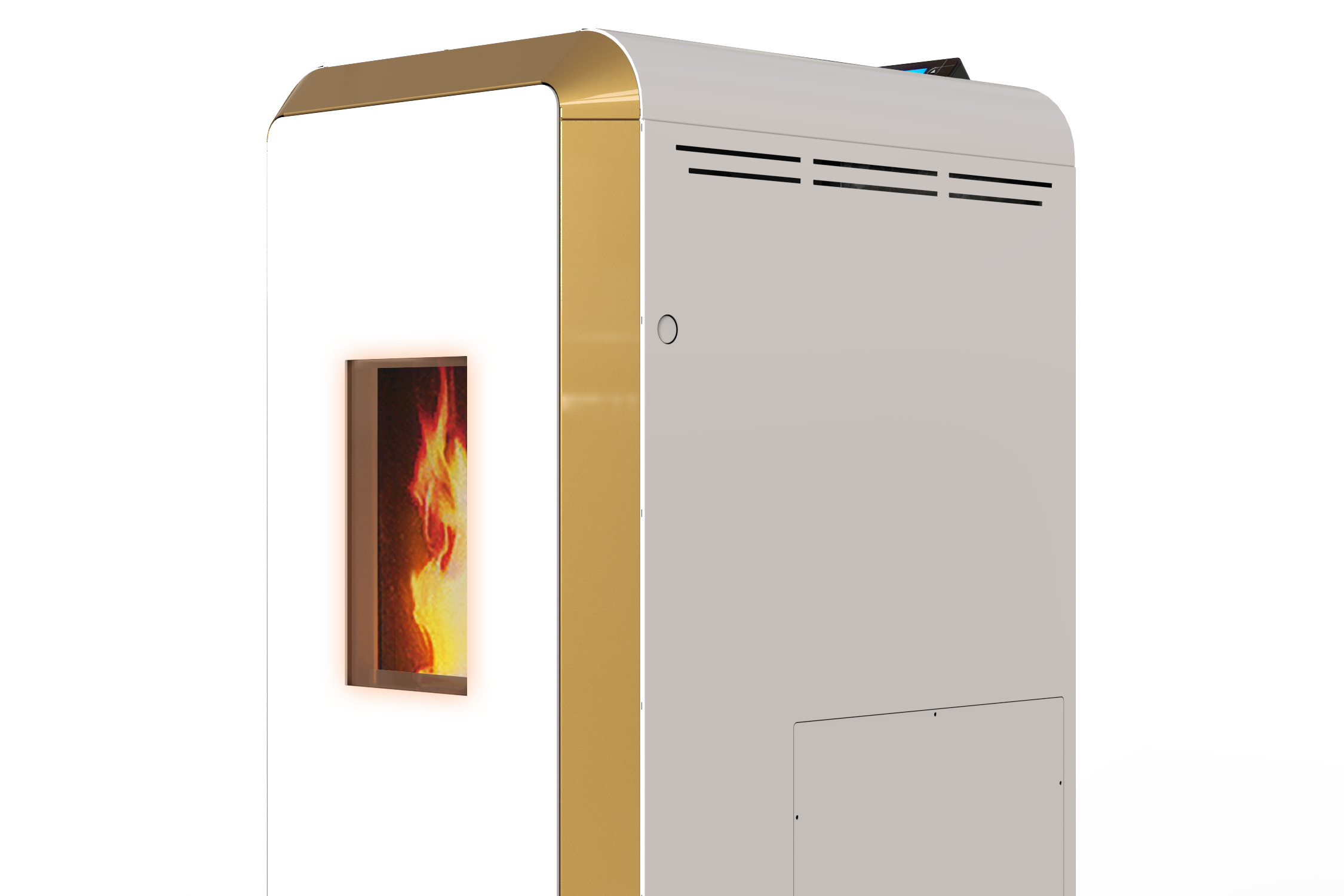 Kuchyňský sporák Concept 2 kombinuje funkci krbu s vodními tryskami a možnost přípravy jídel, čímž vytváří praktické a elegantní řešení pro každou domácnost.